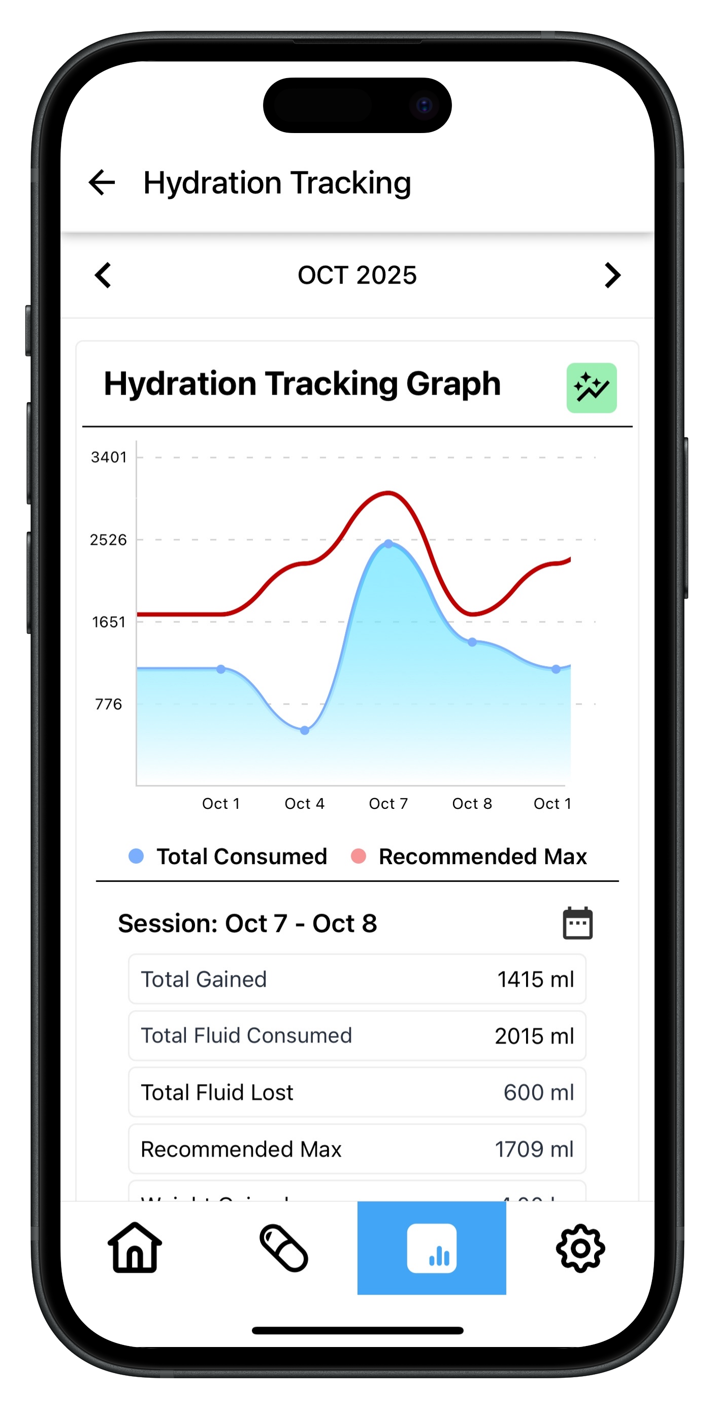 Track your fluid intake between sessions with a clear progress meter, and quickly log what you drink as the day goes on.